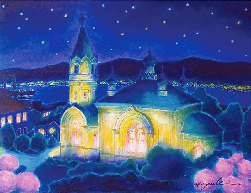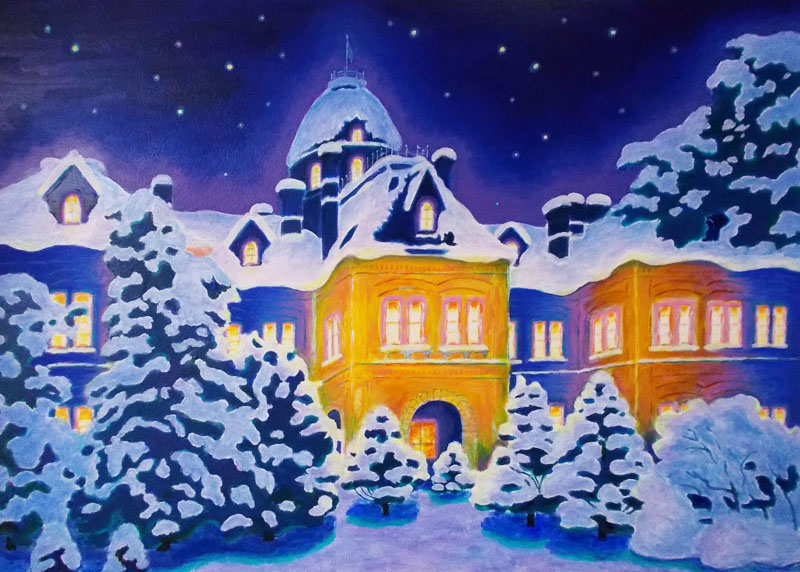 ムッシュユキの故郷で現在の住まい、北海道の風景を描いています。 夜の風景中心ですが、ご覧下さい。絵の下方のPLAYボタンを押すとスライドをお楽しみ頂けます。 サッポロビール博物館 函館ハリストス正教会 大通り公園 赤れんが庁舎 函館の夜景 小樽運河 HOME